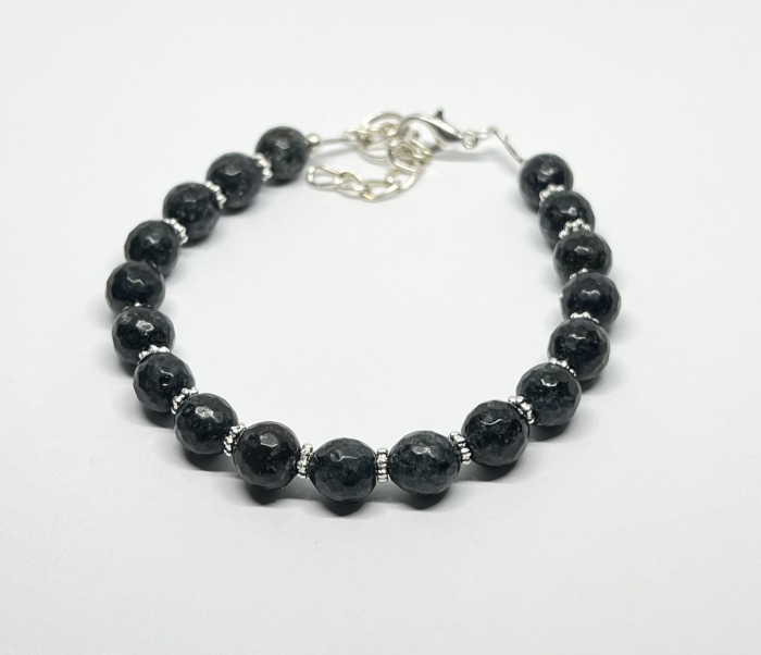 Materiale: agat negru fatetat, elemente metalice argintii