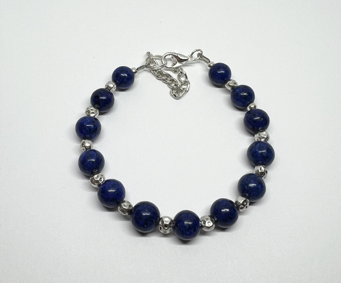 Brățara Deep Blue te poartă într-o călătorie plină de mister, cu mărgele de lapis lazuli natural într-un albastru intens, accentuate de elemente argintii lucrate cu grijă. Un accesoriu elegant și puternic, ideal pentru cei care iubesc rafinamentul discret și simbolistica pietrelor naturale.