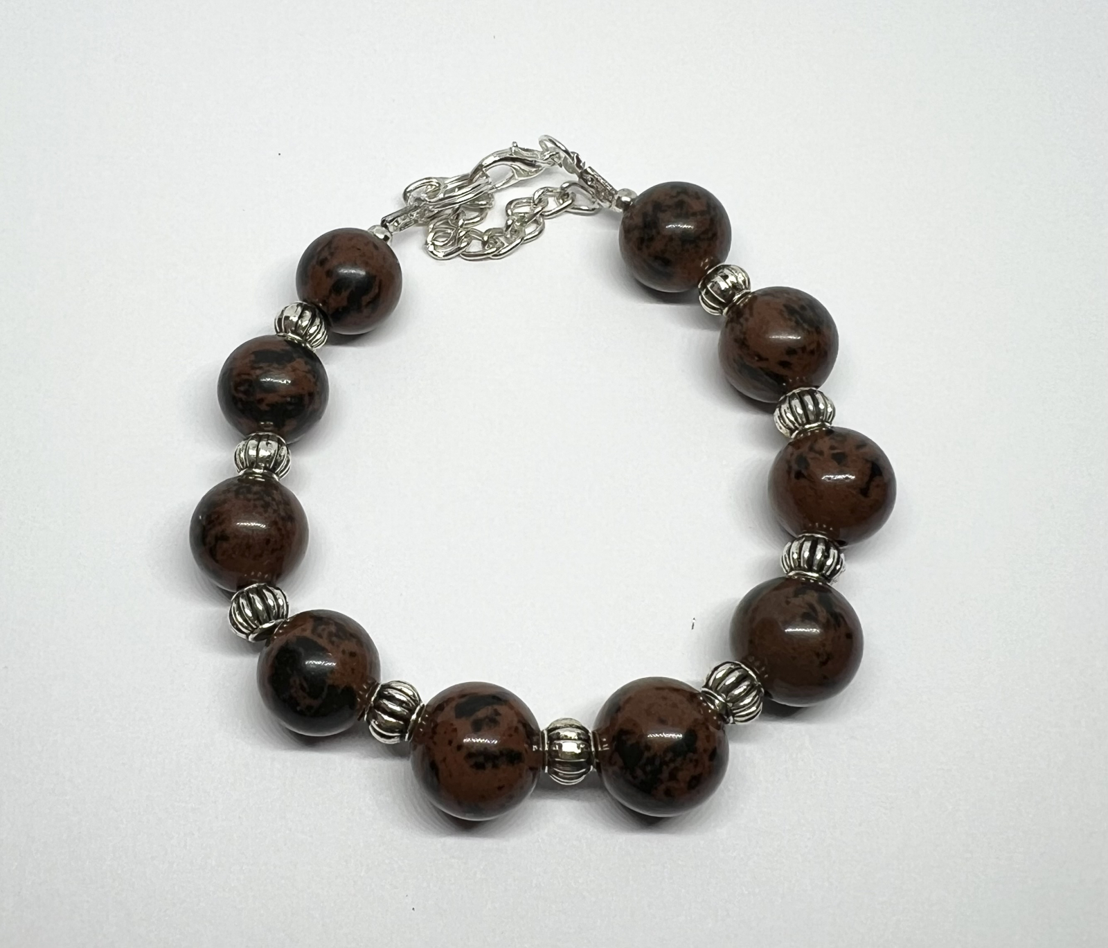 Earth Pulse surprinde frumusețea pământului în tonuri calde de maro și negru, prin pietre naturale de onsidian mahon. Mărgelele metalice argintii adaugă o notă sofisticată, transformând această brățară într-un accesoriu perfect pentru iubitorii de natură și echilibru.