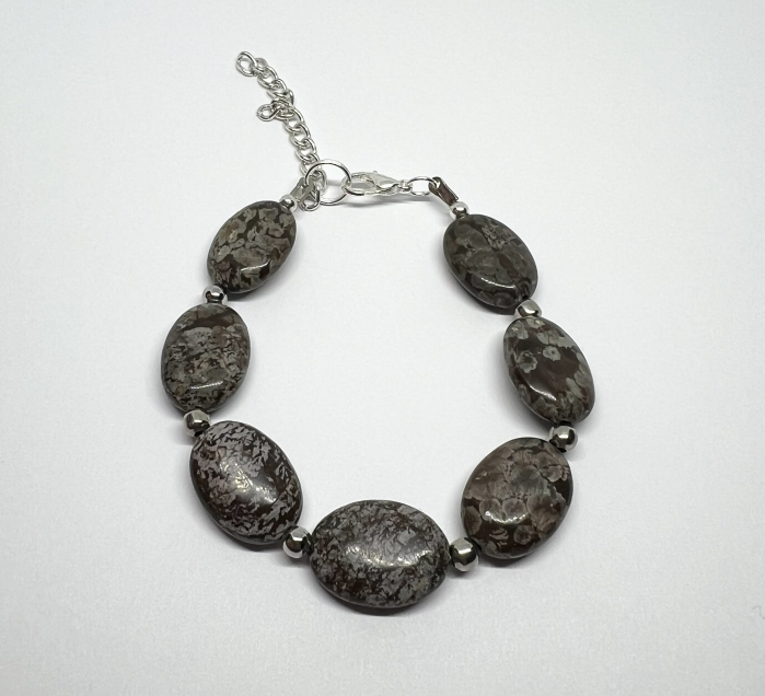 Inspirată de frumusețea pământului, brățara Earth Whisper este realizată manual din pietre ovale de jasp , cu modele naturale unice în tonuri de maro și gri. Elemente metalice fine adaugă un accent elegant și discret, făcând din această brățară o alegere perfectă pentru iubitorii de stil natural, autentic și rafinat. Designul versatil o face ușor de integrat atât în ținutele casual, cât și în cele elegante.