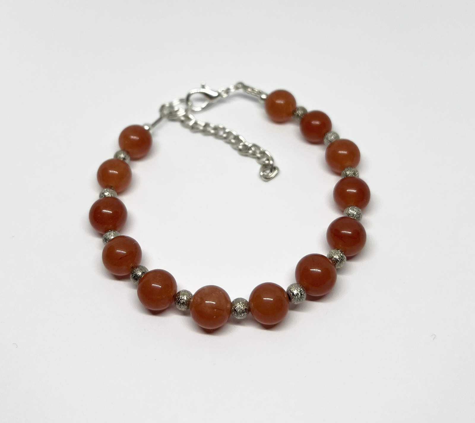 Purtând în sine focul pasiunii, brățara Fiery Soul este realizată din carneol natural de un roșu-portocaliu intens. Mărgelele metalice cu textură fină subliniază strălucirea caldă a pietrelor, creând un accesoriu plin de energie pozitivă.