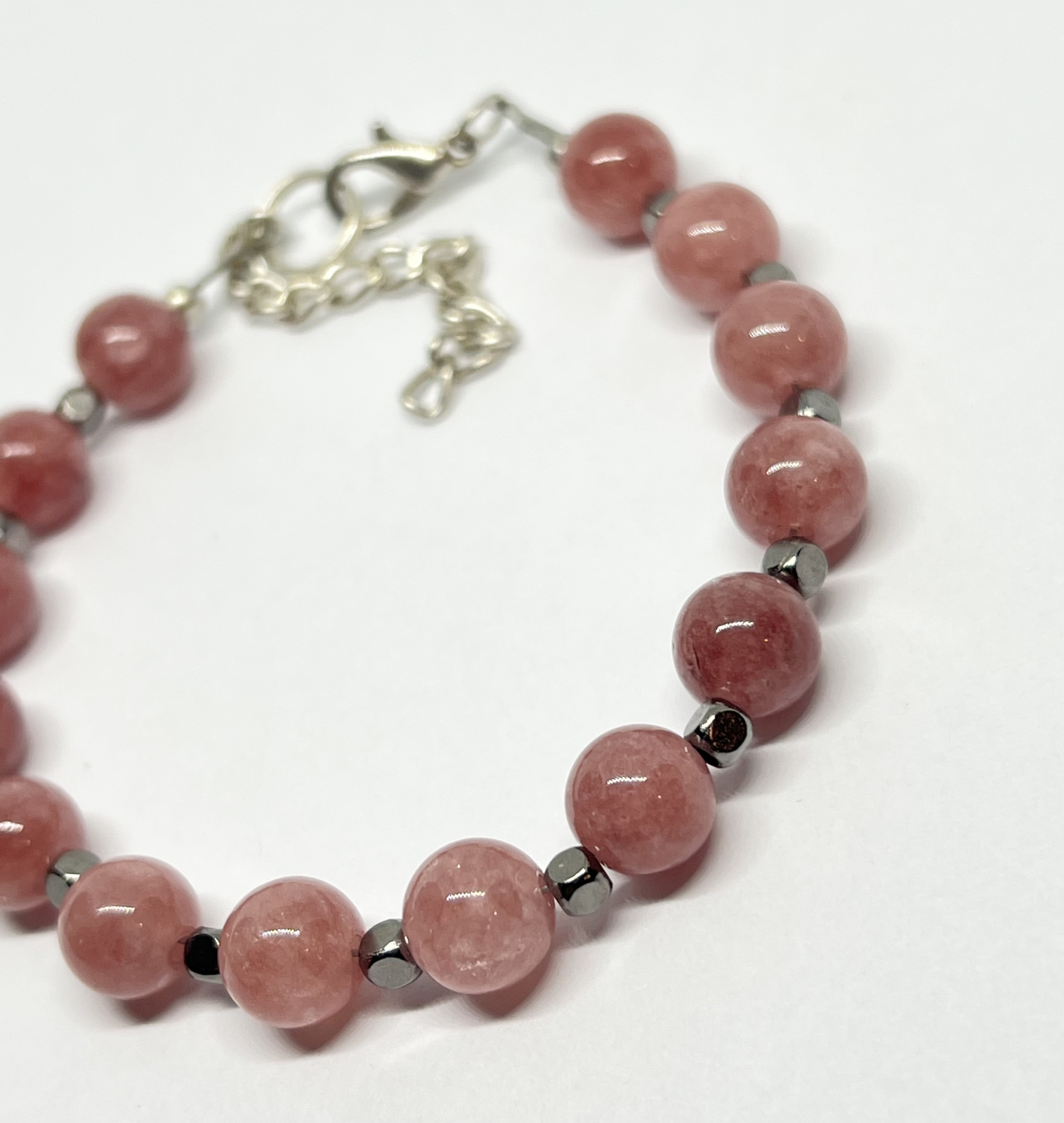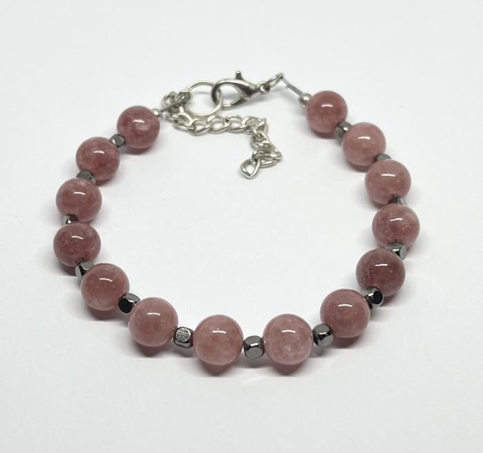 Brățară elegantă, realizată manual din pietre semiprețioase de rodonit si hematit. Combinația dintre cele două pietre creează un echilibru între energie și calm, oferind un design rafinat și modern.
