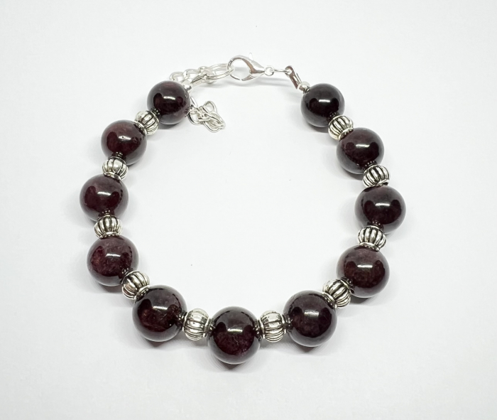 Brățara Wine Passion surprinde intensitatea și pasiunea într-un design elegant, realizat din pietre naturale de granat cu reflexii bogate de roșu închis. Elementele argintii completează perfect această piesă sofisticată, ideală pentru ocazii speciale.