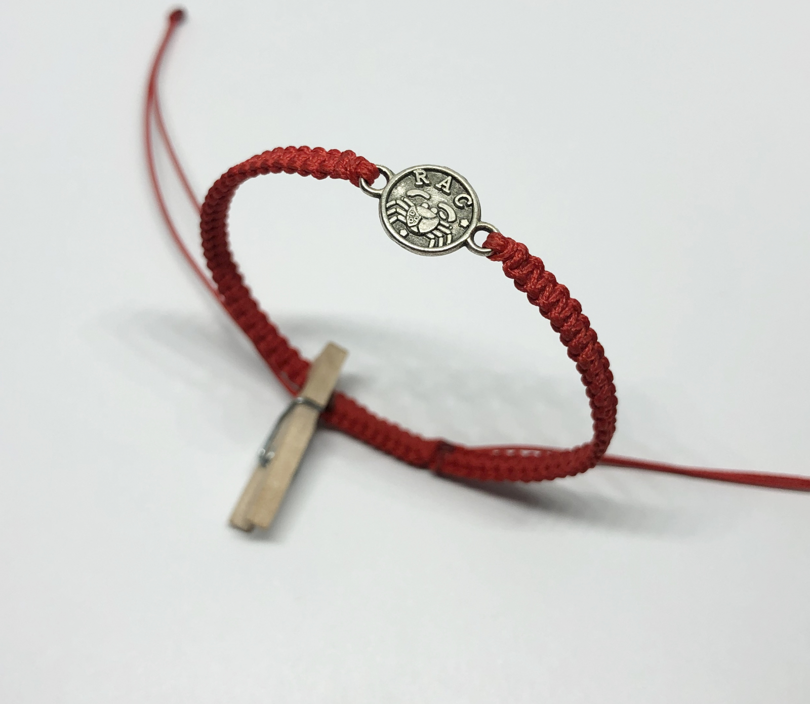 Confecționată cu fir roșu si negru împletit și medalion metalic cu simbolul Racului.