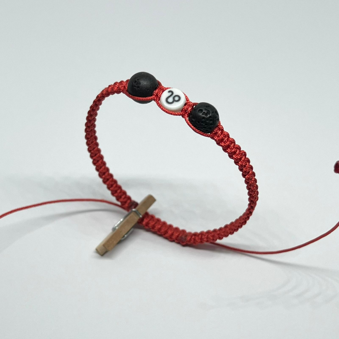Brățară împletită manual din fir roșu intens, cu două pietre vulcanice și o mărgea acrilică ce poartă simbolul zodiei Leu (♌︎). Inspirată de puterea, carisma și încrederea caracteristice acestui semn de foc. Ideală pentru cei care ies mereu în evidență.