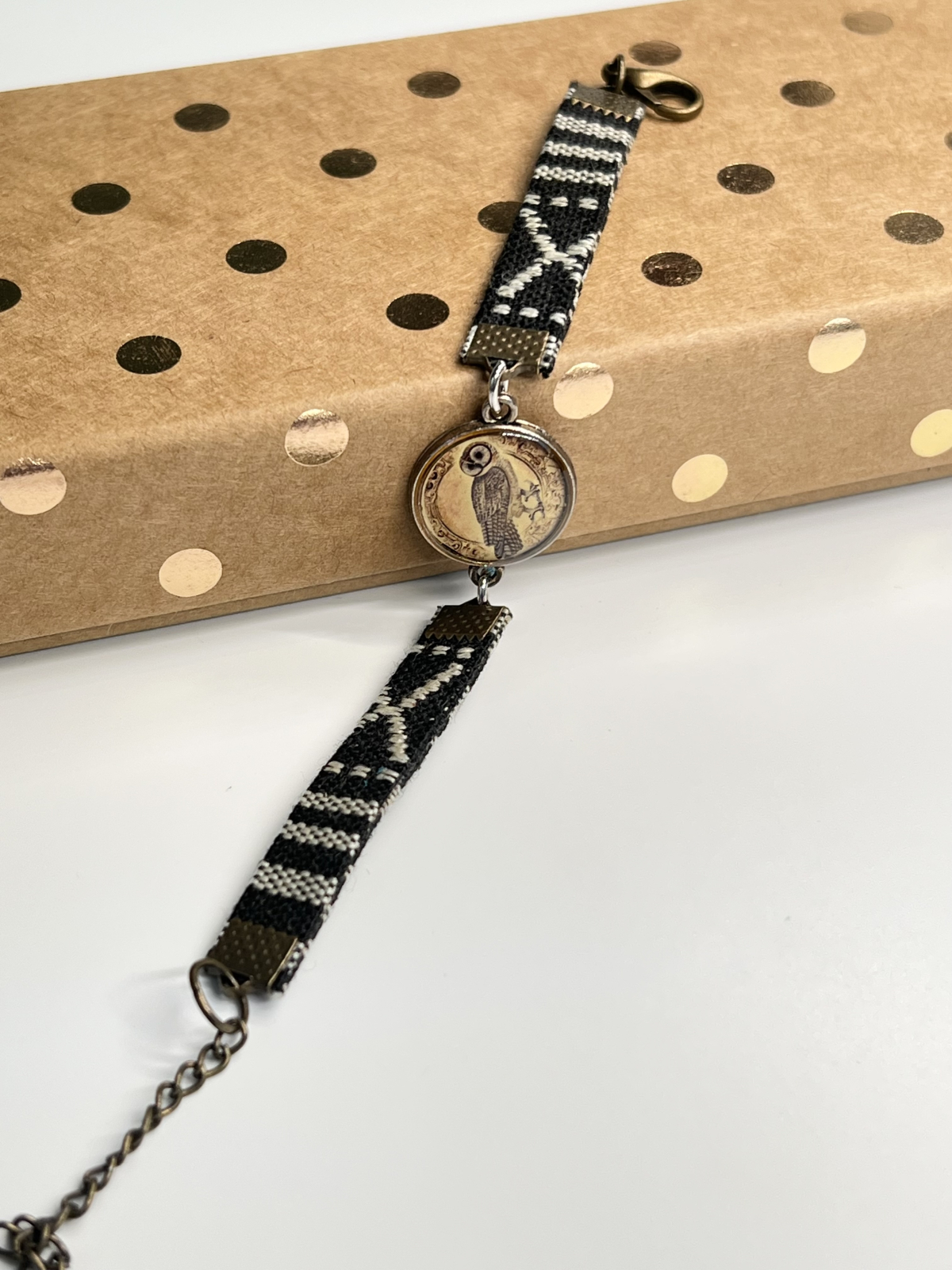 Brățări artizanale realizate din material textil cu motive colorate, inspirate din tradițiile populare. În centrul fiecărei brățări se află un link metalic decorativ cu print artistic, protejat cu rășină transparentă ce oferă un efect lucios și elegant. Combinația de texturi și culori aduce un aer autentic, vesel și plin de personalitate, făcând fiecare brățară unică — un simbol al creativității și al bucuriei de a purta artă la încheietură.