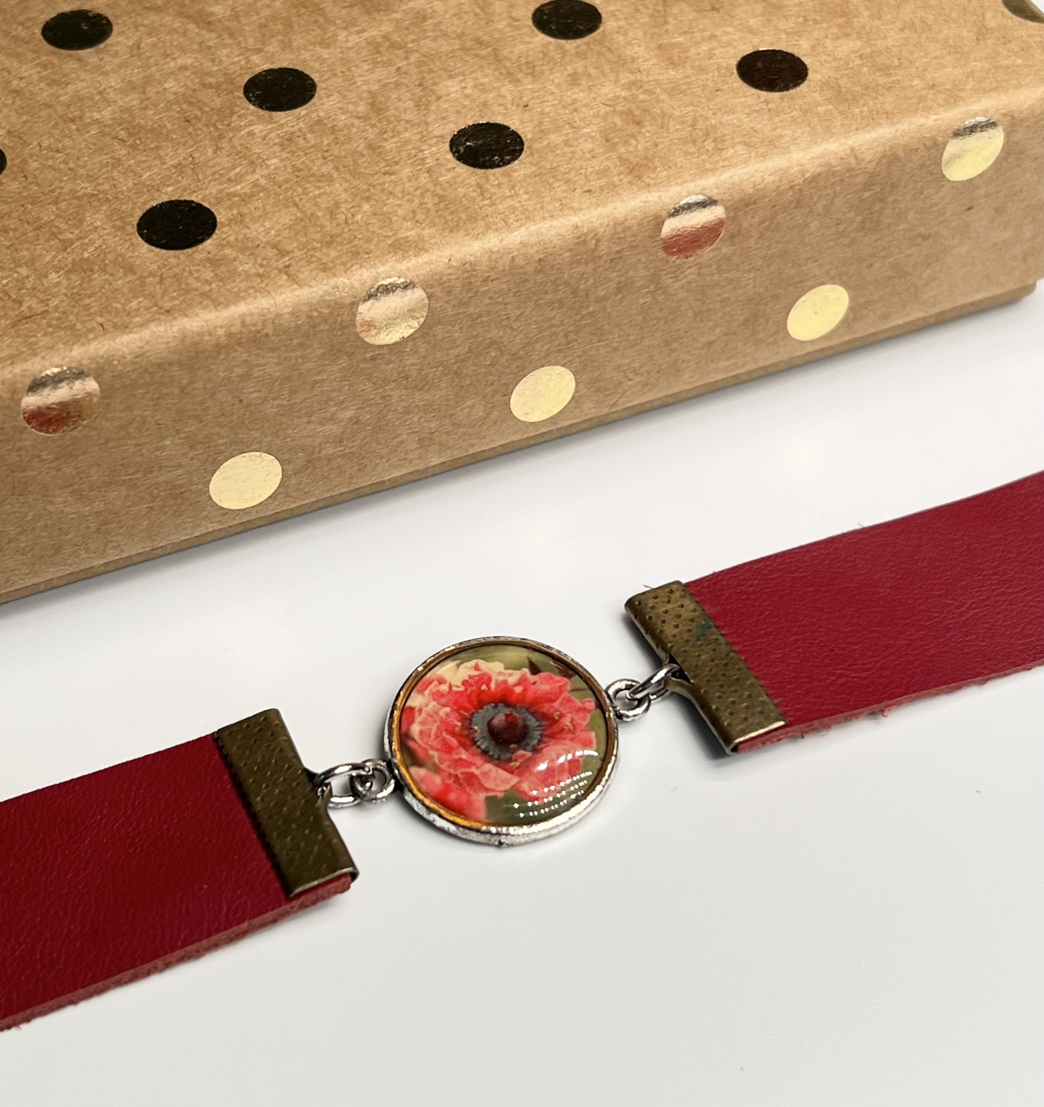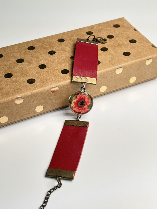 Brățări realizate manual din piele naturală, cu un design unic și detalii care spun o poveste. Fiecare piesă are în centru un link metalic decorativ cu print artistic, protejat cu rășină transparentă pentru un aspect lucios și o durabilitate crescută. Metalul cu aspect antichizat și culorile vibrante ale pielii se îmbină armonios, oferind un accesoriu elegant, potrivit atât pentru ținutele casual, cât și pentru cele cu accente tradiționale.