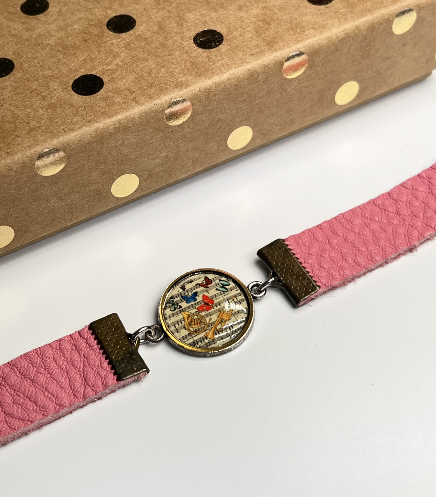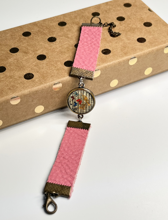 Brățări realizate manual din piele naturală, cu un design unic și detalii care spun o poveste. Fiecare piesă are în centru un link metalic decorativ cu print artistic, protejat cu rășină transparentă pentru un aspect lucios și o durabilitate crescută. Metalul cu aspect antichizat și culorile vibrante ale pielii se îmbină armonios, oferind un accesoriu elegant, potrivit atât pentru ținutele casual, cât și pentru cele cu accente tradiționale.