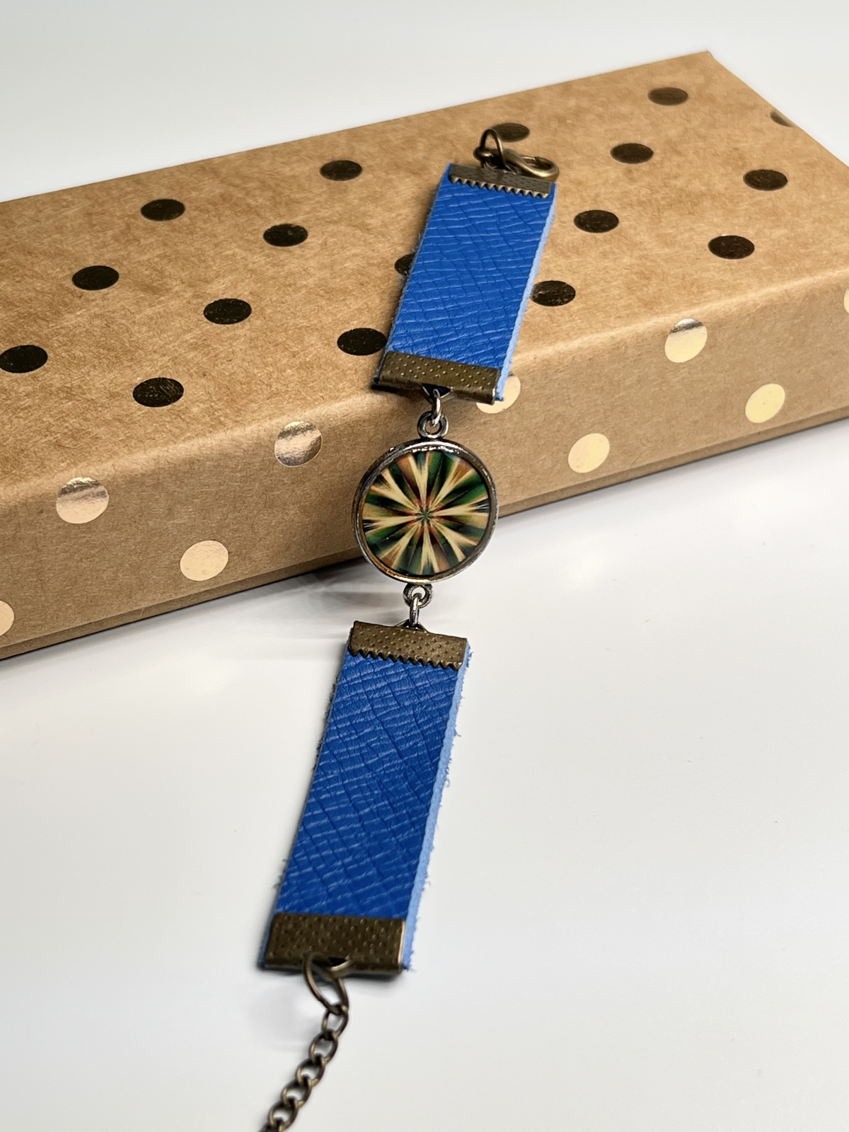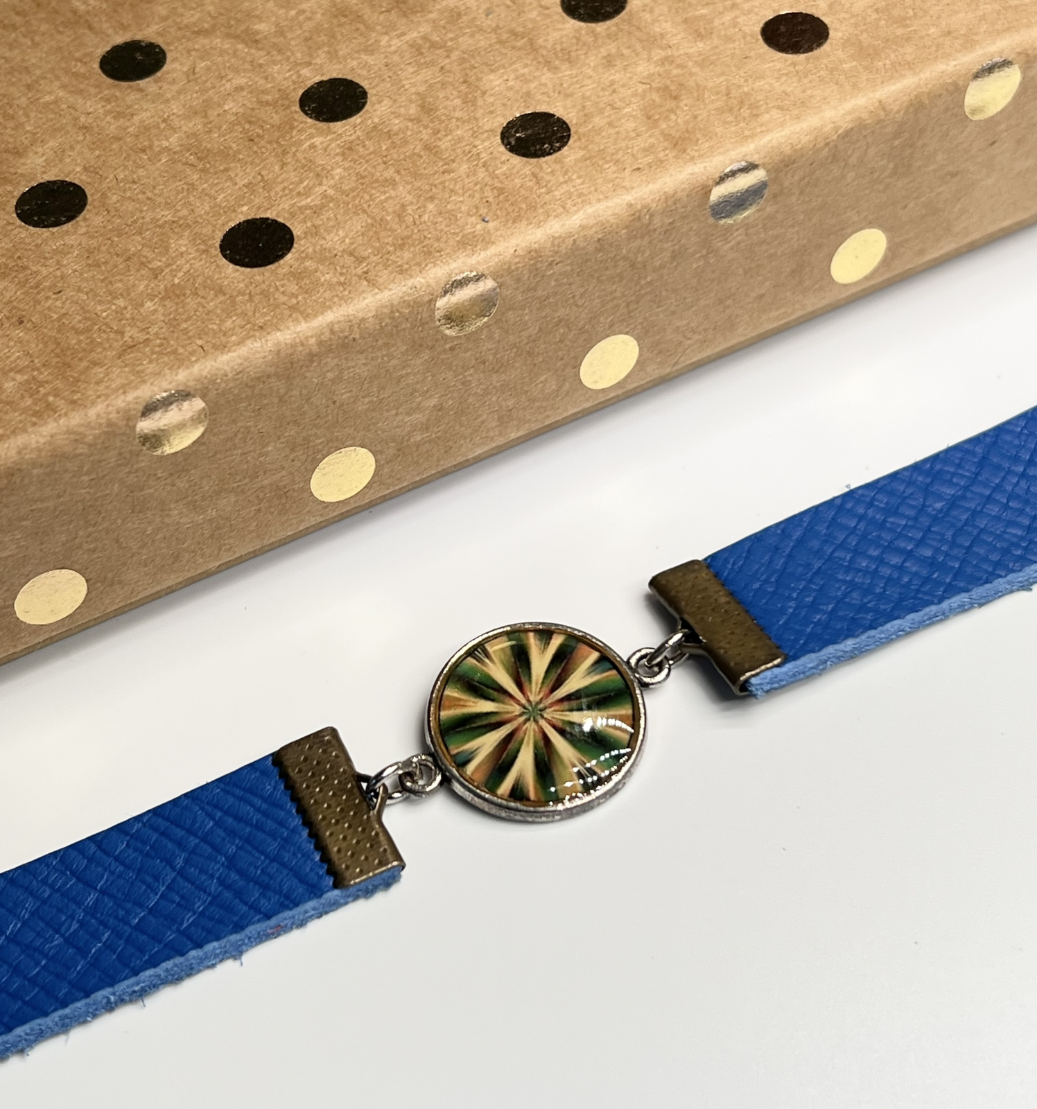 Brățări realizate manual din piele naturală, cu un design unic și detalii care spun o poveste. Fiecare piesă are în centru un link metalic decorativ cu print artistic, protejat cu rășină transparentă pentru un aspect lucios și o durabilitate crescută. Metalul cu aspect antichizat și culorile vibrante ale pielii se îmbină armonios, oferind un accesoriu elegant, potrivit atât pentru ținutele casual, cât și pentru cele cu accente tradiționale.