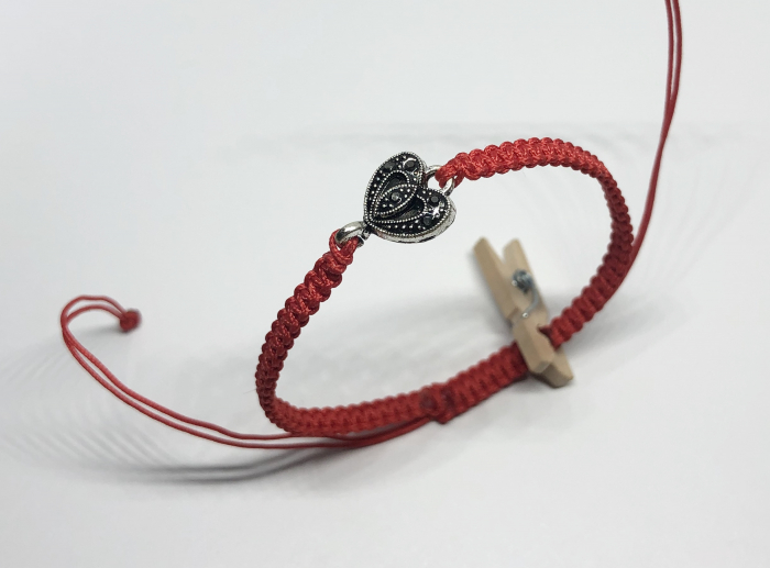 Brățara unisex este lucrată manual din șnur de nylon , cu guta în interior, oferind o rezistență ridicată și un aspect îngrijit. Elementul central este un link metalic realizat dintr-un material rezistent.