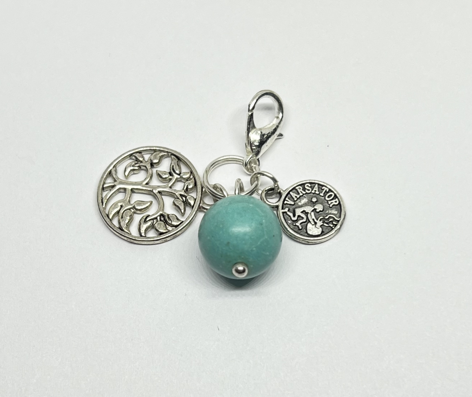 Un accesoriu expresiv pentru nativii Vărsător, cu copacul vieții și o piatră de howlit turcoaz, asociată cu calmul, inspirația și libertatea interioară.