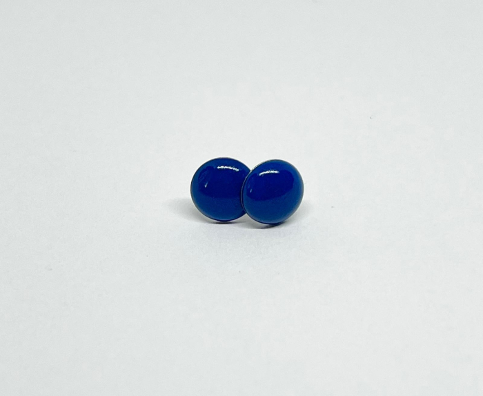 Cercei realizați manual din rășină albastru intens, pe bază din oțel inoxidabil. Un detaliu minimalist care adaugă prospețime și eleganță ținutelor casual sau office.