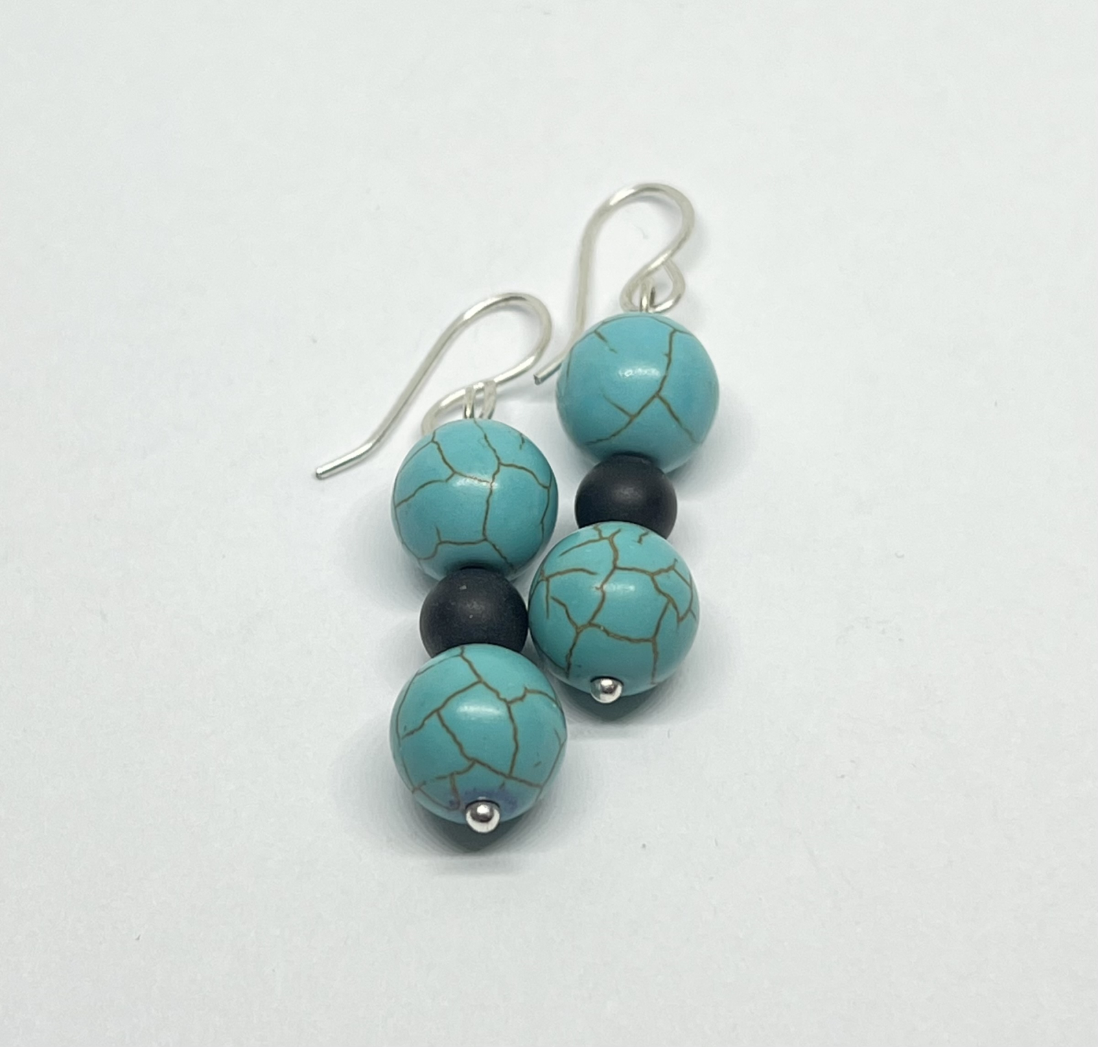 Cerceii “Desert Sky” îmbină perfect contrastul dintre calmul turcoazului și profunzimea onixului negru mat, simbol al echilibrului și al încrederii în sine. Realizați manual, acești cercei aduc un aer modern și elegant, potrivit atât pentru ținutele casual, cât și pentru cele rafinate.