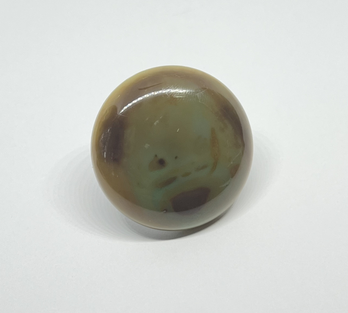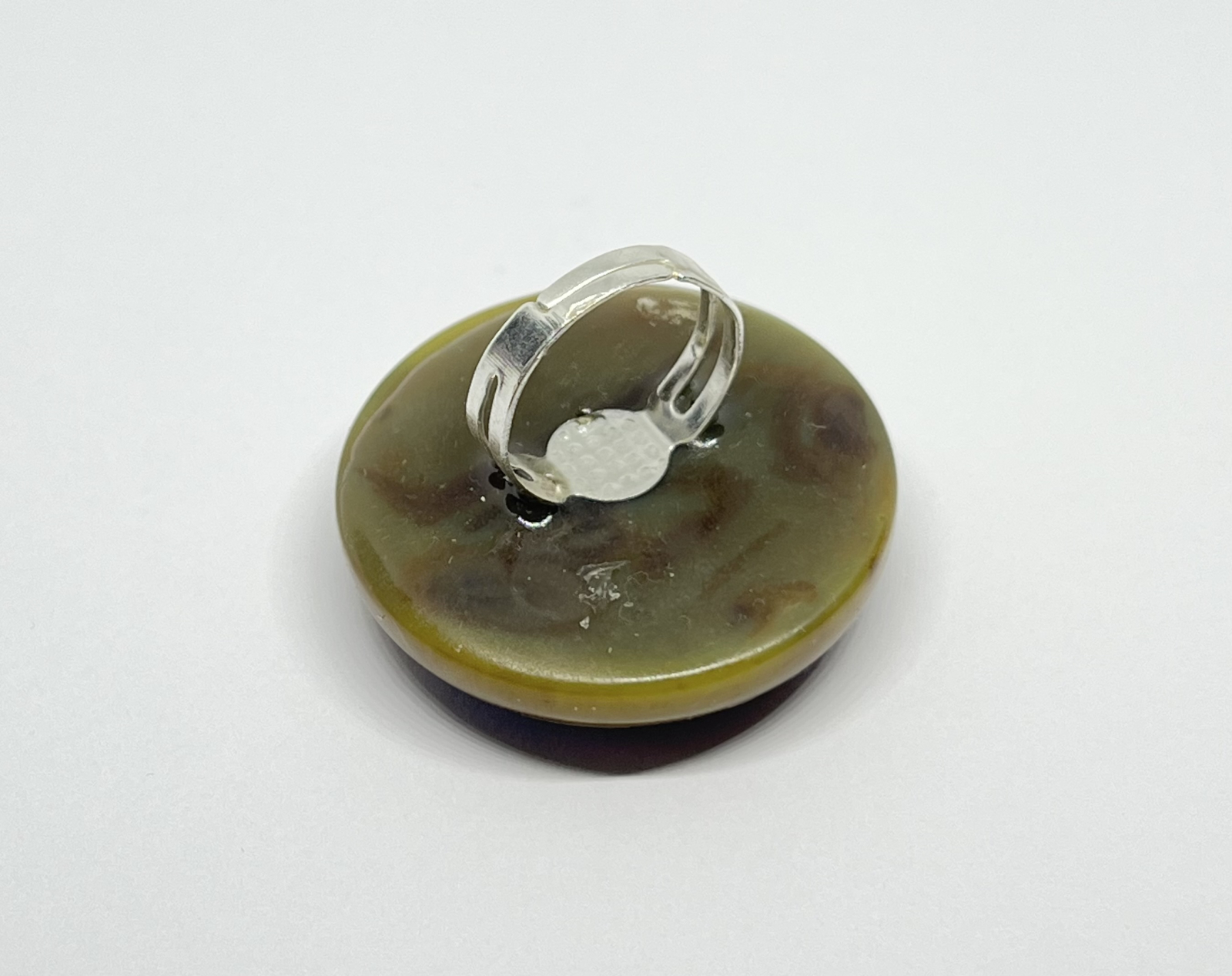 Inel realizat manual, cu piatră semiprețioasă de jasp peisaj, ce îmbină nuanțe de verde măsliniu, maro și bej într-un model organic unic. Fiecare piatră este o mică operă de artă a naturii. Baza metalică argintie, fixată cu rășină transparentă, asigură stabilitate și un aspect elegant.