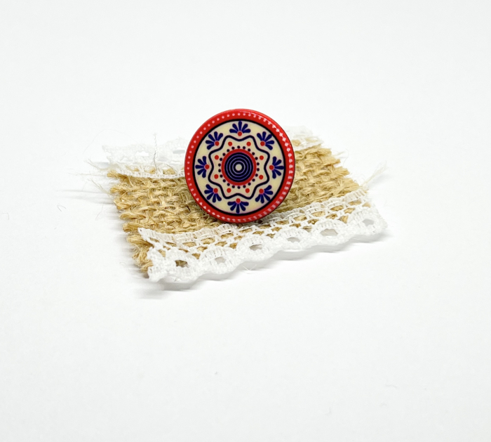 Acești pini decorativi sunt realizați din acril lucios și rezistent, având modele inspirate din simboluri și ornamente tradiționale românești. Sunt accesorii versatile, perfecte pentru a adăuga o notă de identitate culturală ținutelor tale. Se pot purta pe haine, genți, rucsacuri sau pot fi oferiți cadou ca simbol al rădăcinilor și tradiției.