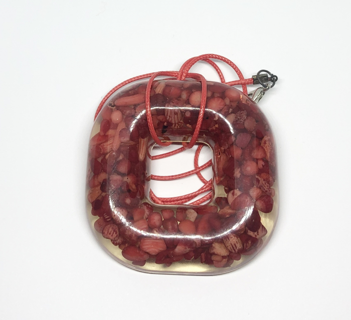 „Energie Geometrică” este un colier modern cu design pătrățos și margini rotunjite, creat manual din rășină transparentă cu inserții de coral roșu. Piesa impresionează prin cromatica vie și geometria îndrăzneață, adăugând personalitate oricărei ținute.