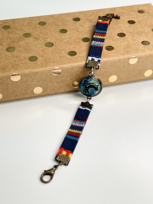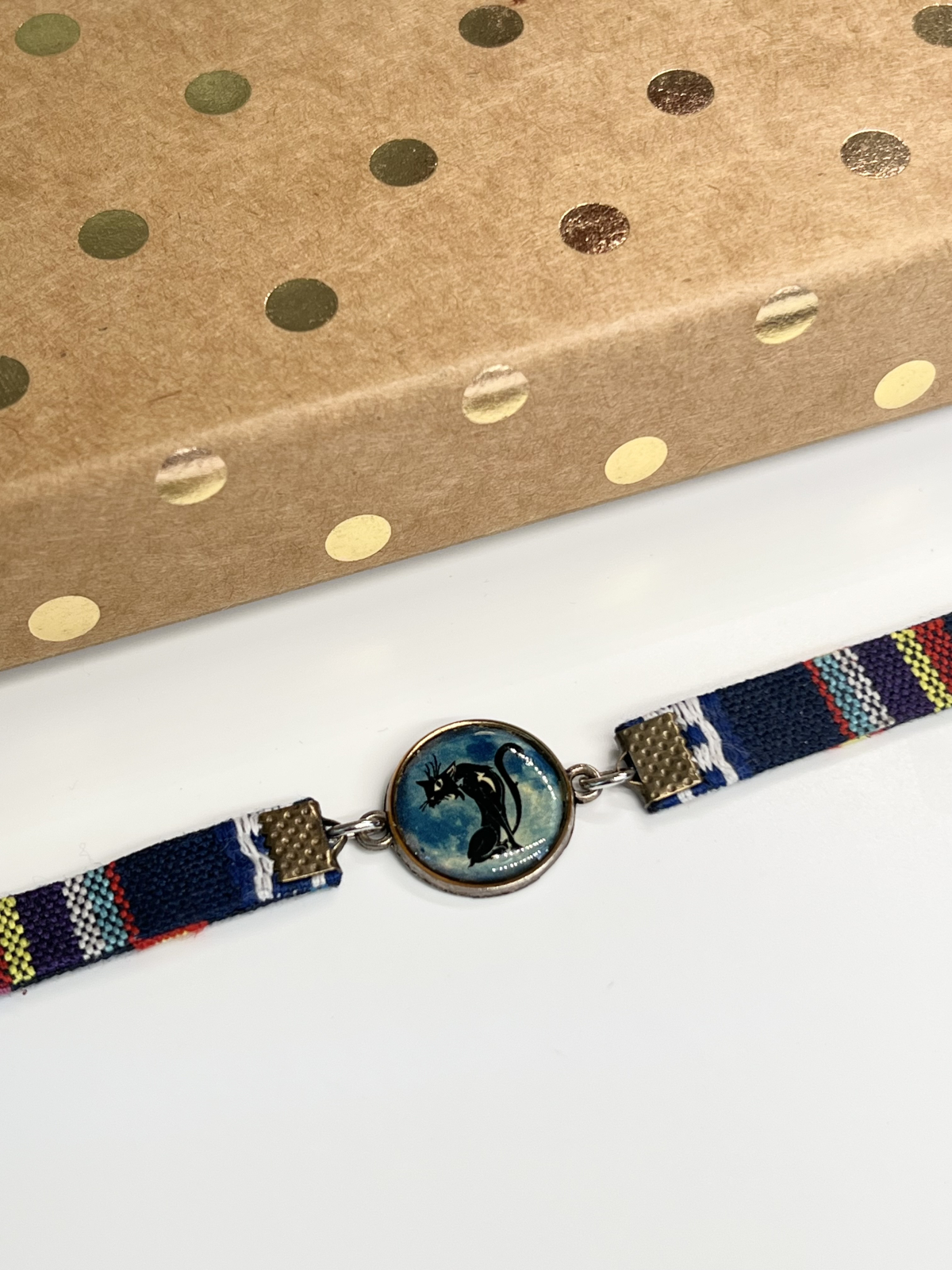 Brățări artizanale realizate din material textil cu motive colorate, inspirate din tradițiile populare. În centrul fiecărei brățări se află un link metalic decorativ cu print artistic, protejat cu rășină transparentă ce oferă un efect lucios și elegant. Combinația de texturi și culori aduce un aer autentic, vesel și plin de personalitate, făcând fiecare brățară unică — un simbol al creativității și al bucuriei de a purta artă la încheietură.