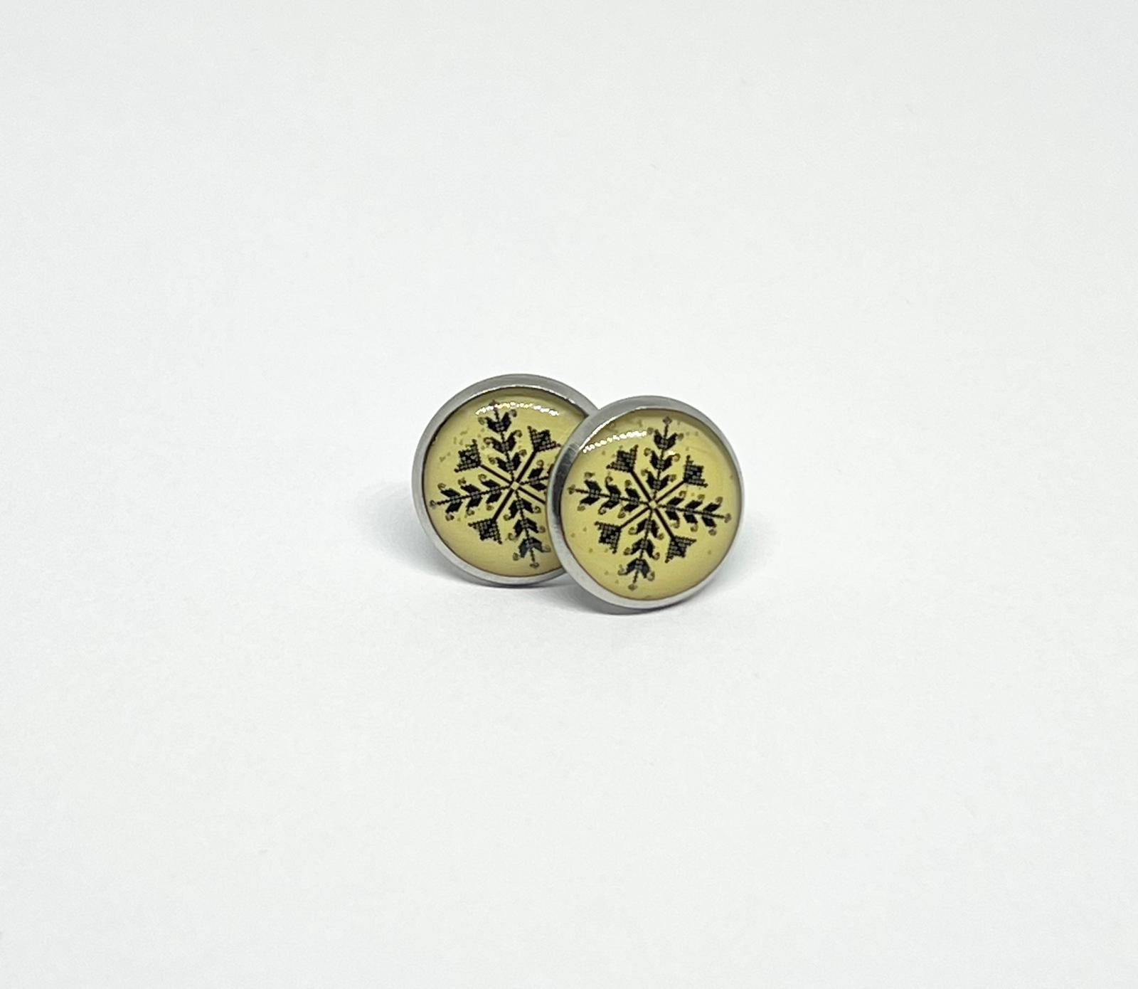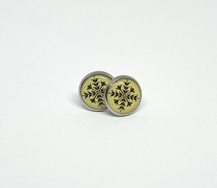 Cercei rotunzi cu motiv tradițional negru, inspirat din semnele vechi românești care simbolizează echilibrul și protecția. Realizați manual din rășină pe bază din oțel inoxidabil, potriviți pentru un look elegant și discret.