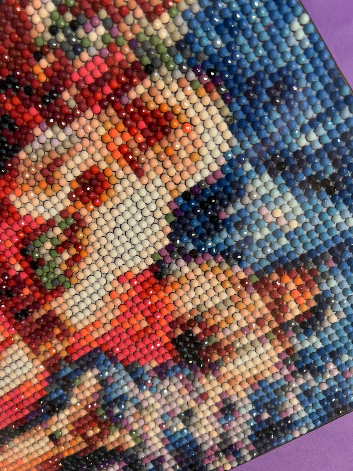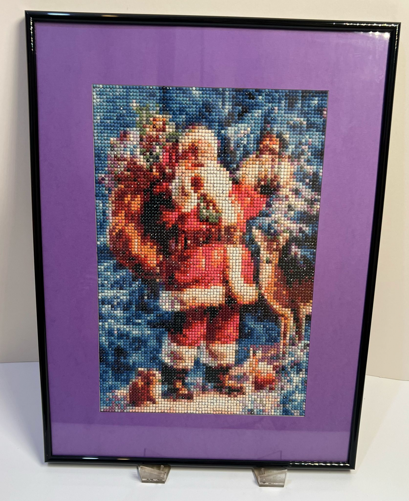 Plin de culoare și farmec festiv, acest tablou Diamond Painting îl surprinde pe Moș Crăciun în mijlocul naturii, alături de animalele pădurii, gata să împartă daruri și bucurie. Realizat manual cu pietricele acrilice ce captează și reflectă lumina, tabloul aduce un strop de magie în decorul tău de sărbătoare.