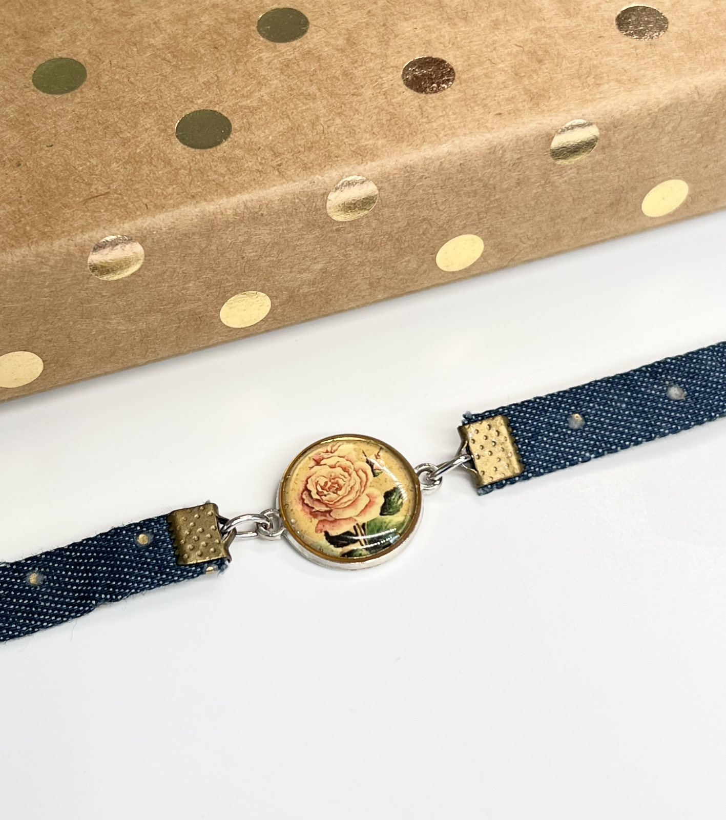 Brățări artizanale realizate din material textil cu motive colorate, inspirate din tradițiile populare. În centrul fiecărei brățări se află un link metalic decorativ cu print artistic, protejat cu rășină transparentă ce oferă un efect lucios și elegant. Combinația de texturi și culori aduce un aer autentic, vesel și plin de personalitate, făcând fiecare brățară unică — un simbol al creativității și al bucuriei de a purta artă la încheietură.