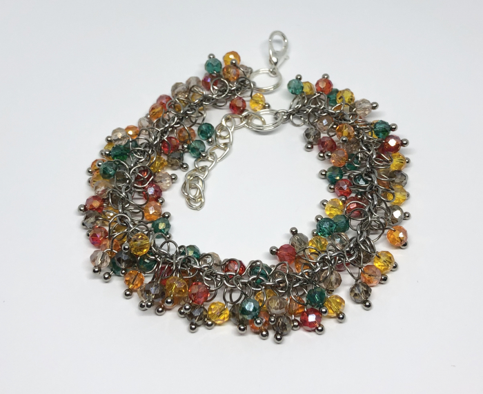 Aceste brățări sunt realizate manual din lanț metalic rezistent și cristale biconice din sticlă, creând un efect spectaculos de volum și strălucire. Designul împletit al inelelor metalice permite cristalelor să se miște liber, producând un sunet discret și plăcut la purtare – transformându-le în adevărate brățări zdrăngănici.