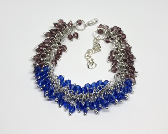Aceste brățări sunt realizate manual din lanț metalic rezistent și cristale biconice din sticlă, creând un efect spectaculos de volum și strălucire. Designul împletit al inelelor metalice permite cristalelor să se miște liber, producând un sunet discret și plăcut la purtare – transformându-le în adevărate brățări zdrăngănici.