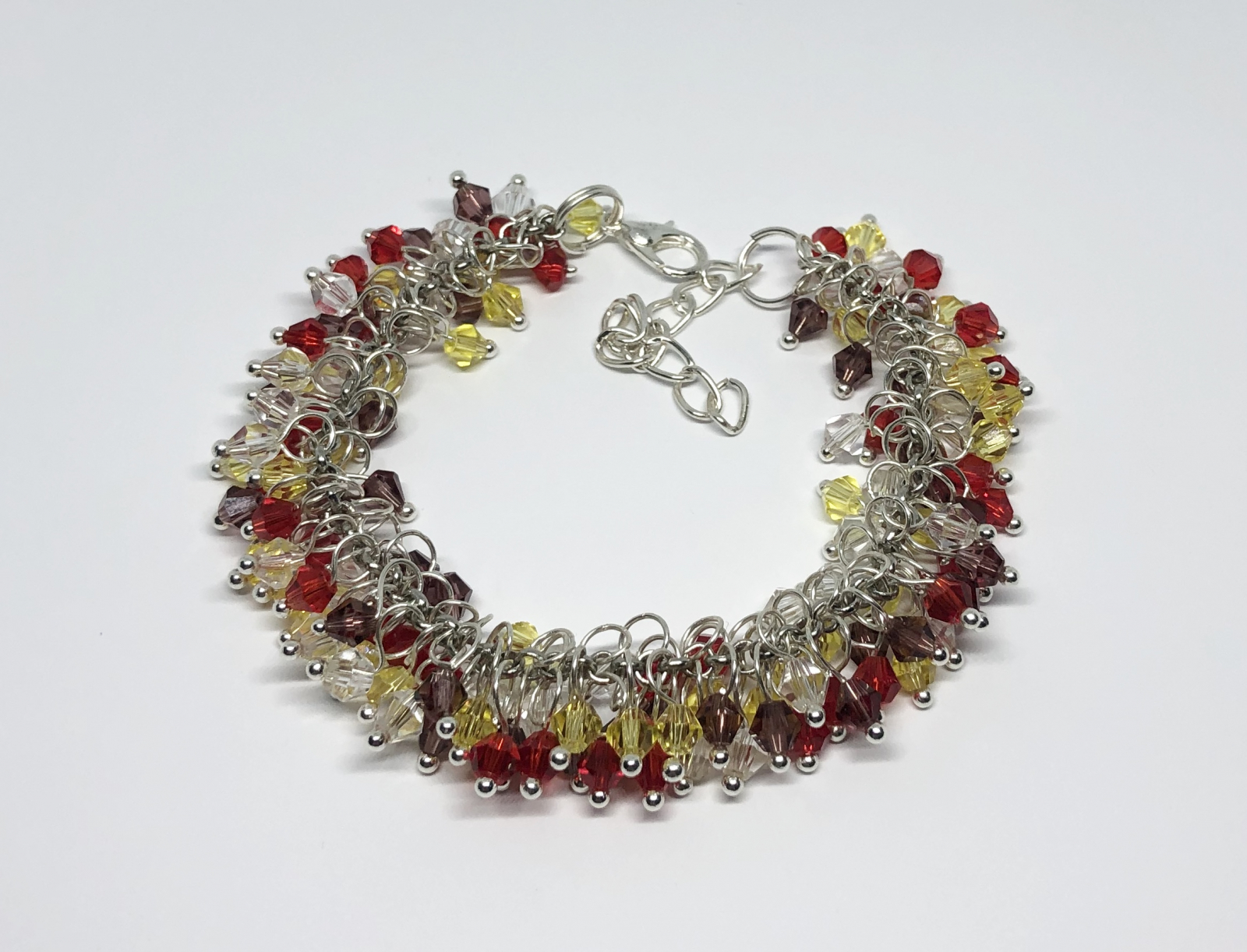 Aceste brățări sunt realizate manual din lanț metalic rezistent și cristale biconice din sticlă, creând un efect spectaculos de volum și strălucire. Designul împletit al inelelor metalice permite cristalelor să se miște liber, producând un sunet discret și plăcut la purtare – transformându-le în adevărate brățări zdrăngănici.